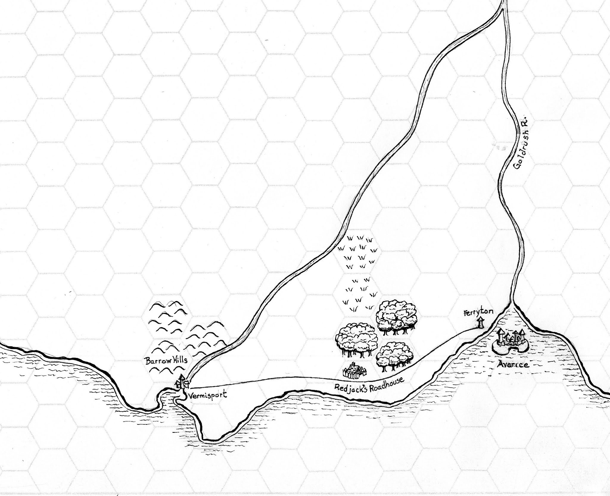 Kragar took the gems to Abdul Farouk, a reliable fence, who took them off his hands for 800 gp, much of which the characters blew on a well-deserved carouse at The Slippery Vixen. At the gaming tables, Kragar won a treasure map detailing the tomb of Halfgrim Bloodslakir, located in the Barrow Hills, just north of the town of Vermisport, two days west of Avarice along the Old Coast Road, and plans for the next money-making venture were laid...